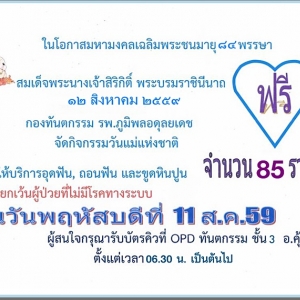 กิจกรรมทำฟันพรี 85 ราย เทิดไท้วันแม่ 2559 ร.พ.ภูมิพลฯ